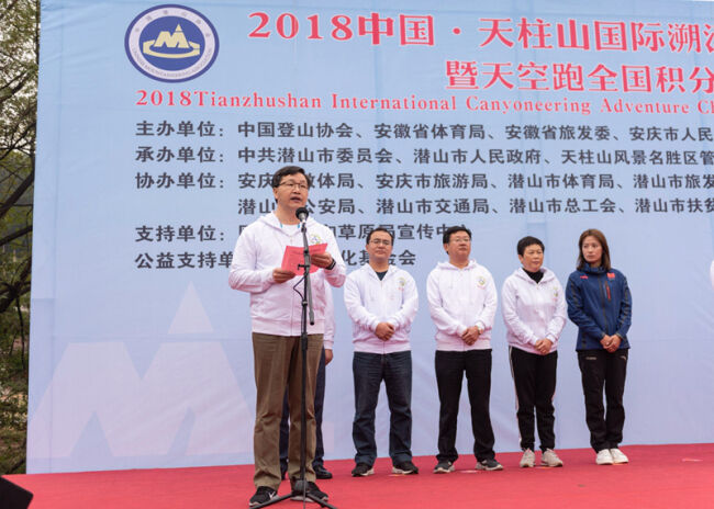 ? ? 出席開幕式的領導和嘉賓有:國家體育總局登山運動管理中心新項目部主任李文茂、國家林業(yè)和草原局宣傳中心副處長王慶勝,中國綠化基金會副處長楊頔,安徽省體育局副局長甄國棟,安慶市教體局局長徐曉春,跳水世界冠軍周呂鑫,中國越野滑雪領軍人物滿丹丹,中共潛山市委副書記、潛山市人民政府市長梅耐雪,潛山市人大常委會主任黃銀枝,潛山市政協(xié)主席郭玉晟,中共潛山市委常委、天柱山管委會副主任涂高生,潛山市人民政府副市長蔡婷婷,潛山市人民政府副市長儲誠煒,北京夢之興文化發(fā)展有限公司董事長張?zhí)靵?。央視知名主持人韓喬生擔任現(xiàn)場主持。