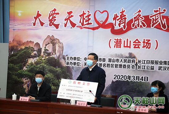 3月4日上午10時(shí),潛山市、武漢市長(zhǎng)江日?qǐng)?bào)長(zhǎng)江公益、青少年發(fā)展基金會(huì)舉行“大愛天柱·情系武漢”云捐贈(zèng)儀式。天柱山景區(qū)5285880元門票義售善款全部捐贈(zèng)給長(zhǎng)江日?qǐng)?bào)長(zhǎng)江公益、青少年發(fā)展基金會(huì),用于關(guān)愛武漢戰(zhàn)“疫”醫(yī)護(hù)人員及子女。