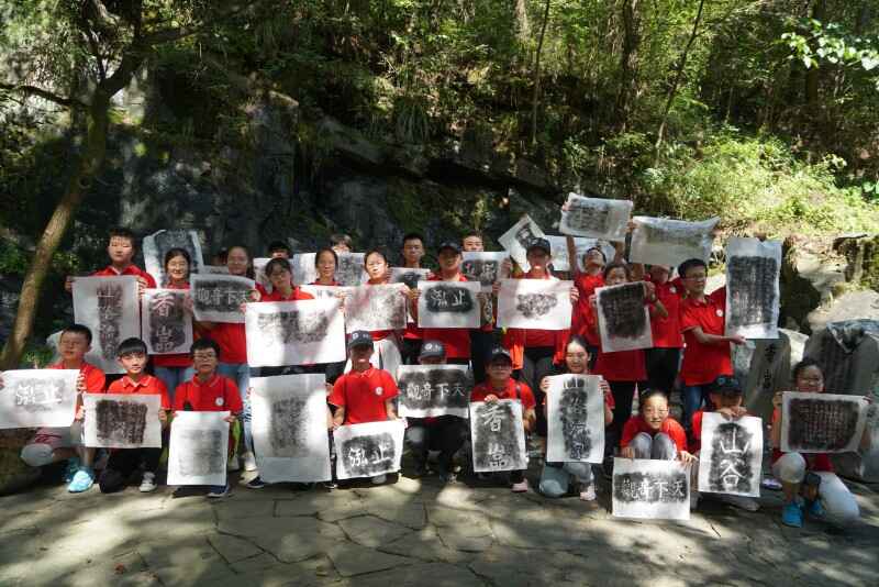 “窮幽深而不盡,坐石上以忘歸”是北宋文學家王安石用以形容山谷流泉美景的經(jīng)典詩句。在這里,營員們不僅體驗到了青山綠水木橋溪流構成的靜謐之美,還感受到了石刻上的文化與藝術:在長達1500余米的山谷兩岸的石壁上,自唐代至今留存的名家文人石刻將近400方,琳瑯滿目,美不勝收。走在歷代書法藝術長廊之中,仿佛再現(xiàn)了古代文人墨客徜徉于此,物我兩忘,題辭勒石的場景……營員們還合作體驗了拓片的制作,在鍛煉動手能力的同時親近了中國傳統(tǒng)文化,感受了中國書法魅力。