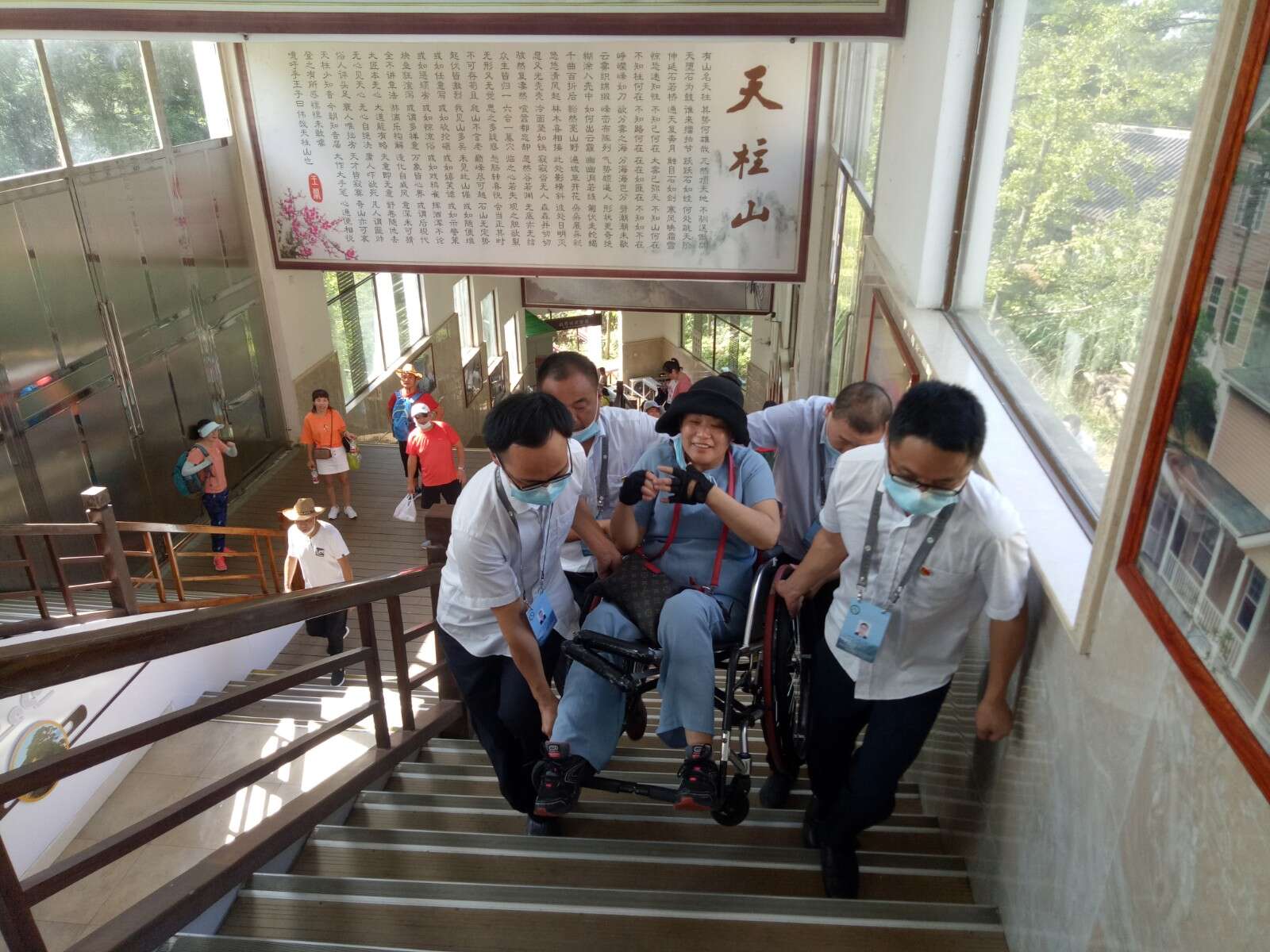 “天柱山很美,景區(qū)服務(wù)很周到,為索道工作人員的貼心服務(wù)點(diǎn)贊”。8月16日,天柱山風(fēng)景區(qū)迎來了一批特殊的游客,為了讓這批殘疾人士一睹天柱山的美麗風(fēng)景,大龍窩索道和執(zhí)法大隊(duì)一中隊(duì)及時(shí)抽調(diào)黨員骨干,組成10余人的愛心志愿者分隊(duì),全程陪同一對(duì)一的為他們貼心服務(wù),志愿者們采取了背、抱、扶的辦法,為殘疾人士實(shí)現(xiàn)了無障礙通行,檢票口開通了綠色檢票通道,站臺(tái)服務(wù)細(xì)致入微,使得這批特殊的游客感受到了來自景區(qū)的溫暖,圓了他們的登山夢,大龍窩索道正在用實(shí)際行動(dòng)踐行著“大愛天柱,情系天下”的服務(wù)宗旨。(文圖/李平)