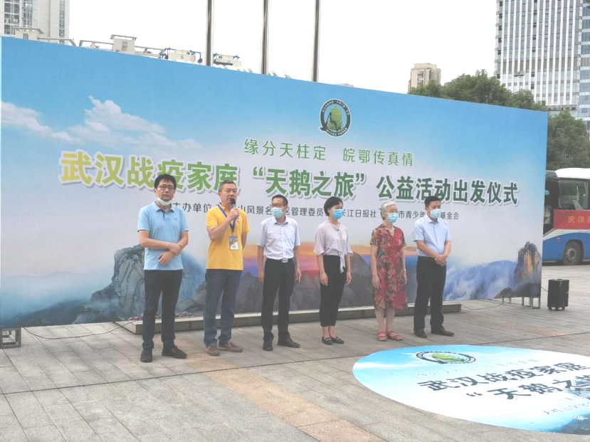 “天柱山關(guān)愛基金”相關(guān)負(fù)責(zé)人介紹,本次公益活動(dòng)是天柱山關(guān)愛基金發(fā)起的活動(dòng)之一,“天鵝之旅”中的“天”指天柱山,“鵝”是湖北簡稱“鄂”的諧音,天鵝象征美麗純潔、吉祥美好,天鵝之旅代表著天柱山景區(qū)和全國人民對武漢抗疫英雄們的關(guān)愛,也代表著湖北與安徽兩省人民之間的深情厚誼。