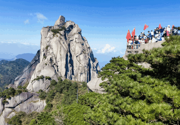 為進一步營造喜慶祥和的節(jié)日氛圍,天柱山景區(qū)還積極開展各類活動。其中,“立天柱之巔 燃愛國之情”活動以唱紅歌迎國慶的形式,組織72名青年手拿紅旗,在天柱山之巔,用嘹亮的歌聲為祖國慶生。此外,經(jīng)典的黃梅戲表演,讓現(xiàn)場觀眾感受到黃梅戲文化的無窮魅力。