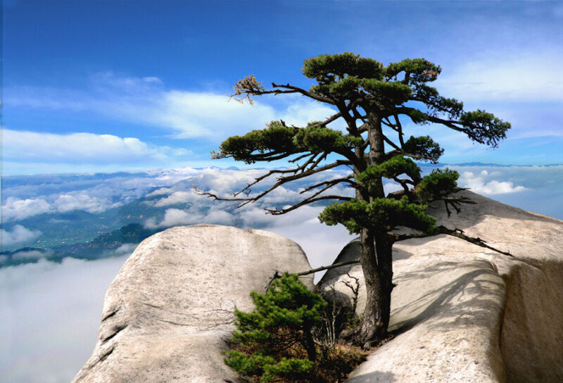 登天柱,滿目皆松。在安徽潛山市天柱山上,千年古松不下萬(wàn)株,千姿百態(tài)。其中尤以群松之首的天柱松最為出名。天柱松與日月為伴,風(fēng)雨為友,據(jù)了解,已有1000多歲。
