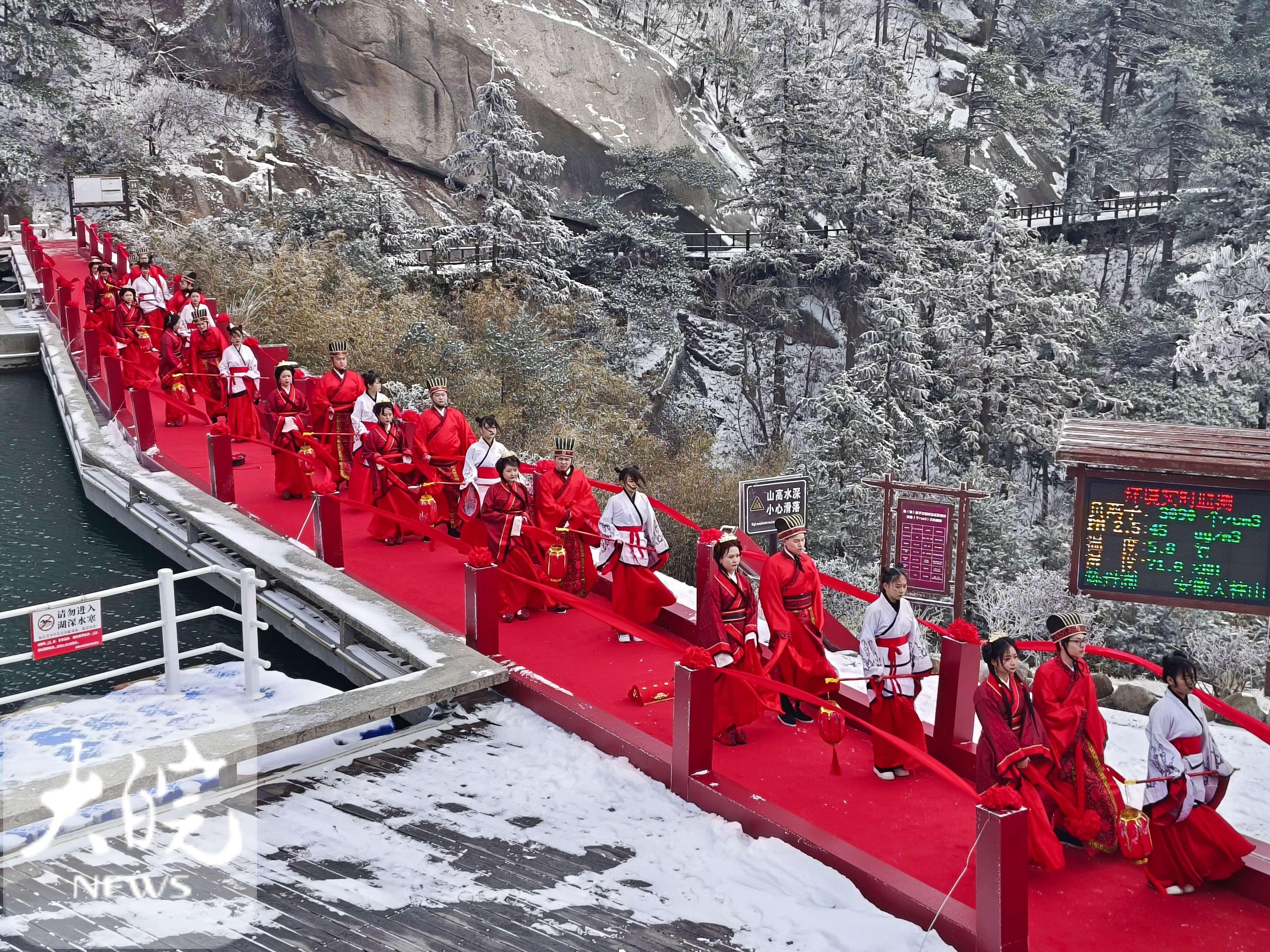 大皖新聞訊 ? ?2月13日-14日,由安徽天柱山風(fēng)景名勝區(qū)管委會、潛山市文化旅游體育局主辦,安徽省攝影行業(yè)協(xié)會、天柱山旅游發(fā)展有限公司承辦的“緣份天柱定 山盟海誓行”首屆天柱山“山盟海誓”婚旅文化節(jié)成功舉辦。來自上海、北京、海南、湖北、安徽、杭州攝影行業(yè)協(xié)會、婚紗攝影企業(yè)負責(zé)人和全省各地的10對新人相聚在美麗的天柱山,來了一場漫游愛情之旅。