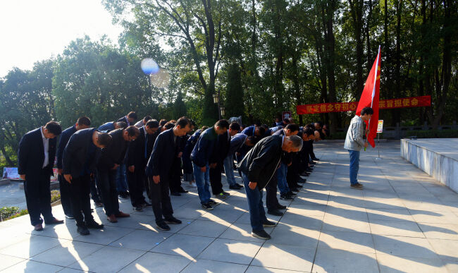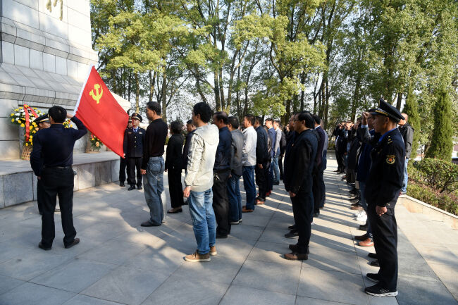 上午9時(shí),全體人員整齊列隊(duì),緩步走進(jìn)革命烈士陵園,向革命烈士紀(jì)念碑敬獻(xiàn)花籃,在莊嚴(yán)肅穆的紀(jì)念碑前肅立默哀,并向烈士紀(jì)念碑三鞠躬。全體黨員面向鮮紅的黨旗,莊嚴(yán)地舉起右手進(jìn)行入黨宣誓,表達(dá)了不忘初心、牢記使命的政治信念,表達(dá)了為黨的事業(yè)奮斗終身的決心和愿望。